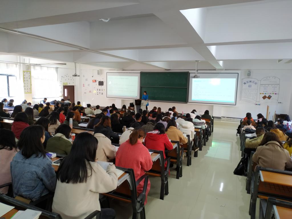 2018年11月26日,来自山东师范大学yl23455永利集团的尹苗副教授在理综楼5B02教室,为永利2016级生物科学(师范)专业的全体学生进行了一场主题为“面向未来的教学模式改革”的讲座。尹苗老师自2015年起开始在“细胞生物学”、“中学生物学教学论”等课程中开展混合式教学实践,她主讲的“中学生物学教学论”是山东师范大学首门上线的慕课课程,取得了良好的应用和运行效果,在此背景上展开的本次讲座,向广大师范生介绍了信息化时代新的教学模式。