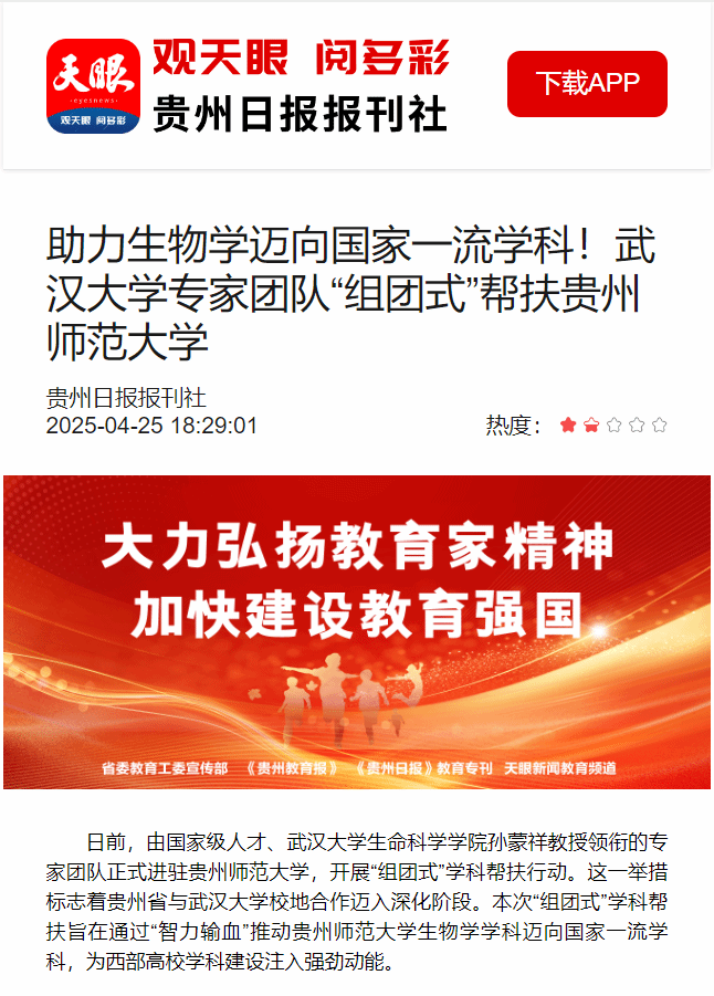 【转载】天眼新闻|助力生物学迈向国家一流学科!武汉大学专家团队“组团式”帮扶yl23455永利集团