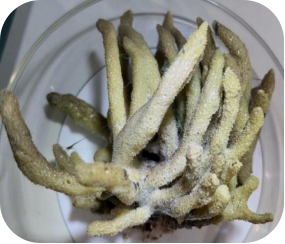 此次发现的淡水海绵动物结构十分简单,集中附着生长在青苔上,多见于水中长满青苔的石块表面、倒在水中的树木上、营固着生活。体柔软、体表附细软刺、呈辐射对称、棒状,色灰褐、黄褐,由一个基部散发多个分支,分支长2cm-10cm左右,没有明显的组织分化,没有器官和系统。