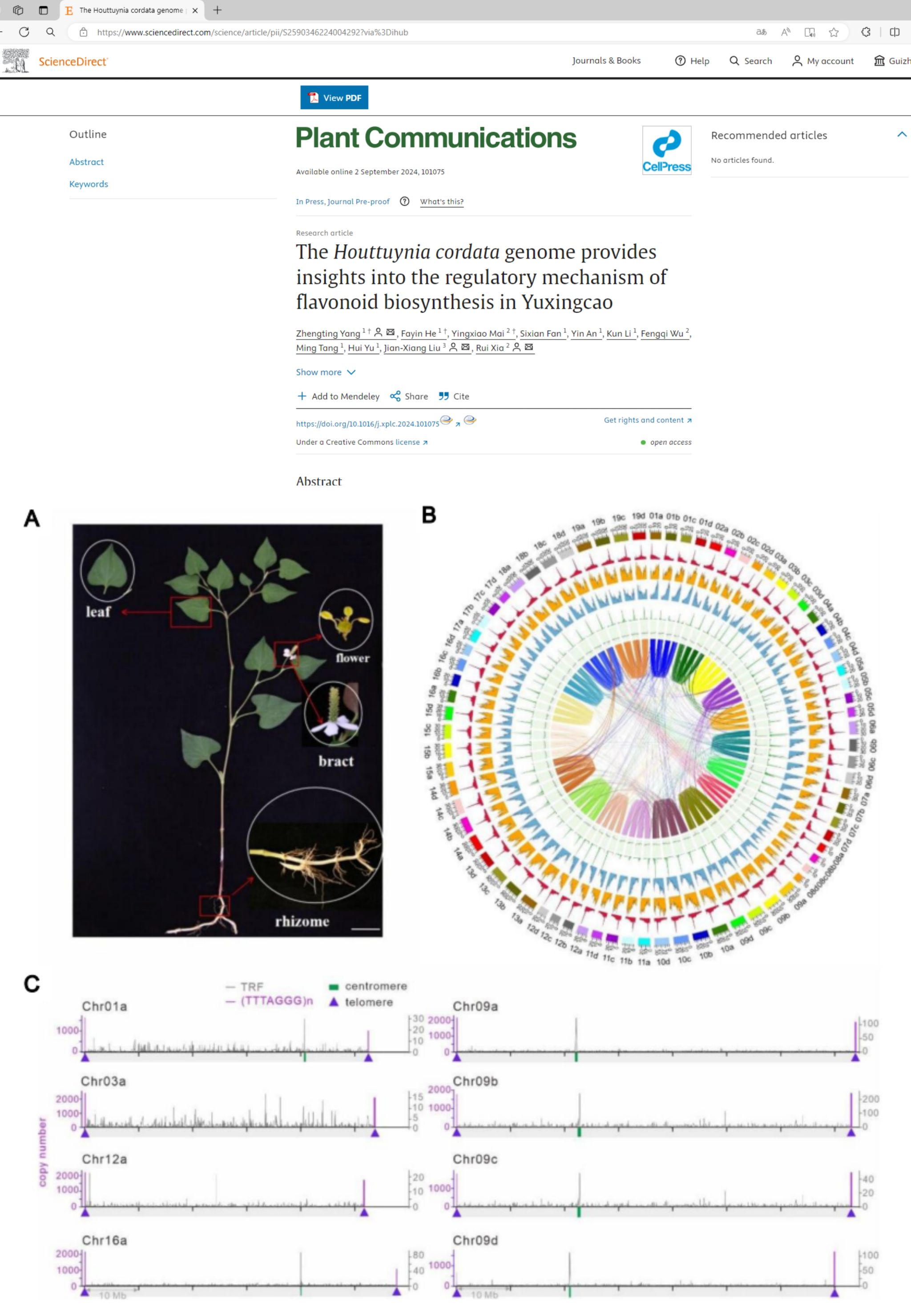 近日,永利西南喀斯特山区生物多样性保护国家林草局重点实验室乙引团队的杨正婷教授,联合华南农业大学园艺学院夏瑞教授团队和浙江大学丽水生命健康创新中心刘建祥教授团队,在生物学领域中科院一区Top期刊Plant Communications(IF=9.4)在线发表了题为“The Houttuynia cordata genome provides insights into the regulatory mechanism of flavonoid biosynthesis in Yuxingcao”的研究论文。