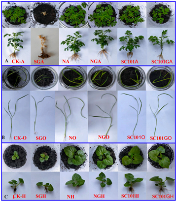 近日,永利罗世琼教授与贵州省山地环境重点实验室杨占南教授,在生物学领域中科院一区TOP期刊Microbiological Research 在线发表,题为Effect of pathogen Globisporangium ultimum on plant growth and colonizing bacterial communities的研究性论文。该论文揭示黄花蒿(Artemisia annua)、水稻(Oryza sativa)和鱼腥草(Houttuynia cordata)选择性招募的细菌群落可以减轻病原真菌Globisporangium ultimum对幼苗生长的危害(图 2)。