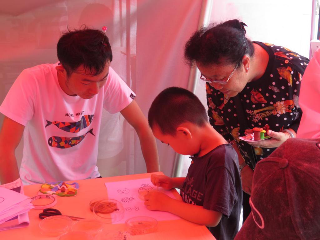 小朋友在研究生志愿者指导下体验培养皿绘画