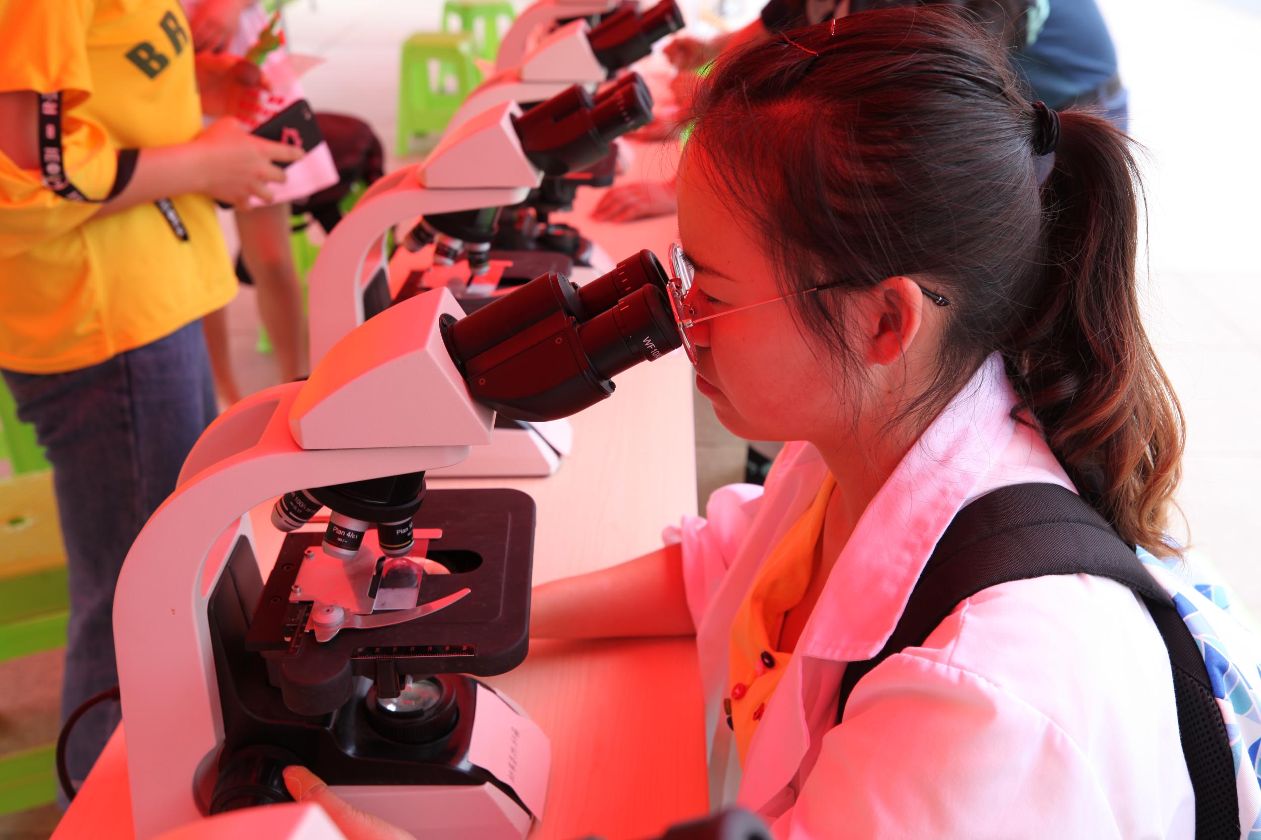导致拉肚子的大肠杆菌、做馒头的酵母菌到底长成什么样?在活动现场,师生们将事先培养好的细菌、真菌等制成装片,观众们通过显微镜就可以看到其庐山真面目。
