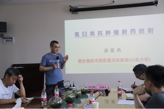 6月24日,山东大学微生物技术国家重点实验室的国家杰出青年基金获得者汤亚杰教授以“鬼臼类抗肿瘤新药创制”为题,开启了本次教师学术论坛。