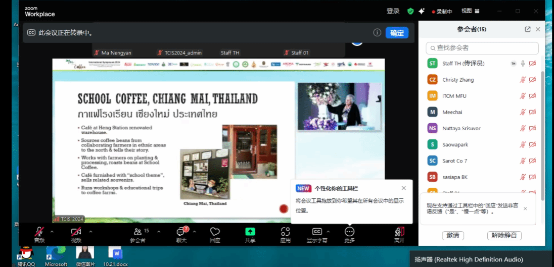 2024年7月4日至7月5日,永利100余名师生参与了一次由泰国清莱皇太后大学精心组织的线上学术活动——2024年国际茶叶与咖啡研究会议,共同见证了这一跨学科领域的最新研究成果和前沿思想的交流。