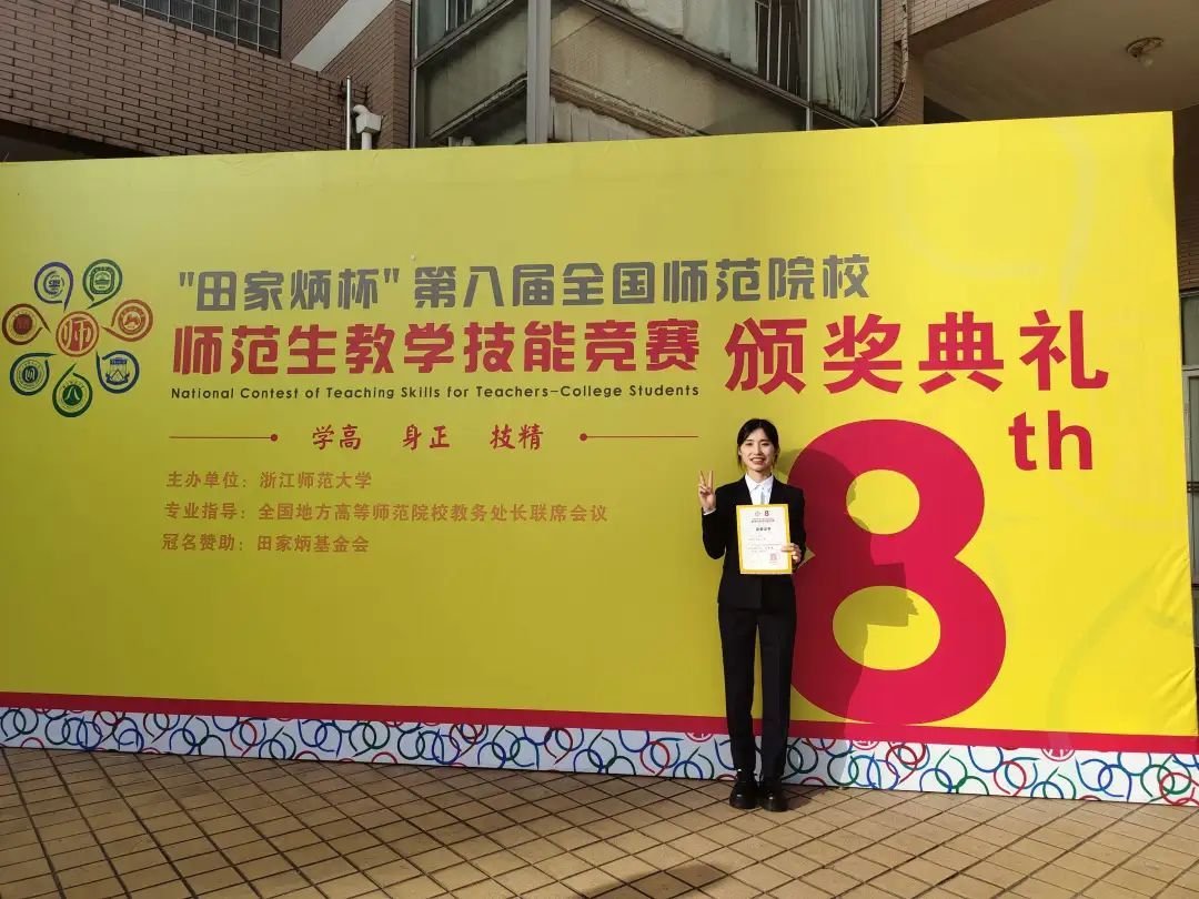 “田家炳杯”全国师范生教学技能竞赛由田家炳基金会冠名资助,每年举办一次。原本应在浙江师范大学举行第八届田家炳杯全国师范生教学技能竞赛,但由于新冠疫情的影响,该比赛被分为了线上初赛,线下决赛两部分,然而在备赛期间并不是一帆风顺的,比如在备赛期间我面临着考研复习,教育实习等巨大压力,但庆幸的是在此期间,老师们(彭涛副院长、杨珺老师、江昱老师等)不断的鼓励、学长学姐们热情的帮助、学弟学妹们积极的配合促使我成功进入了决赛,在此由衷地感谢她们!然而进入决赛意味着面临更为巨大的挑战,决赛前我感到过紧张、焦虑、有压力,但在决赛的前一天晚上我突然觉得紧张与焦虑只会无济于事,倒不如放松心态好好享受比赛,是因为我想到老师说过的一句话:这次比赛很有可能是我人生中唯一的一次也是最后的一次。一想到这里,我才意识到面临决赛的确更多的应该是珍惜和享受,而不是焦虑与畏惧,最终我带着这样的想法顺利完成了决赛。现在回过头来看,从初赛到决赛的整个过程当中,我最大的收获就是要敢于挑战自己,即使最终的结果不理想,但我感受了来自他人的温暖、克服了内心的不勇敢、学习了竞争对手的优点等,这些对于我来说,何尝不是一种成功呢?