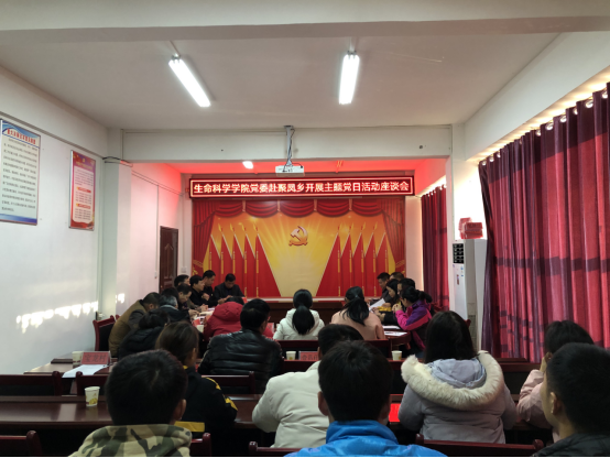 实地调查研究结束后,学院党委和聚凤乡党委召开了结对帮扶座谈会。会上,龚进介绍了聚凤乡开展“不忘初心、牢记使命”主题教育情况和油茶产业发展情况,卢仁富围绕“聚凤乡基本情况、驻村干部队伍建设、乡村产业支撑发展、乡村基础设施建设、聚焦两不愁三保障”五个方面,介绍了聚凤乡开展决胜脱贫攻坚工作情况,并对学院党委的结对帮扶表示衷心感谢。