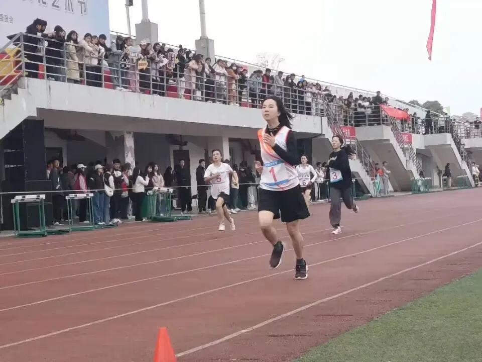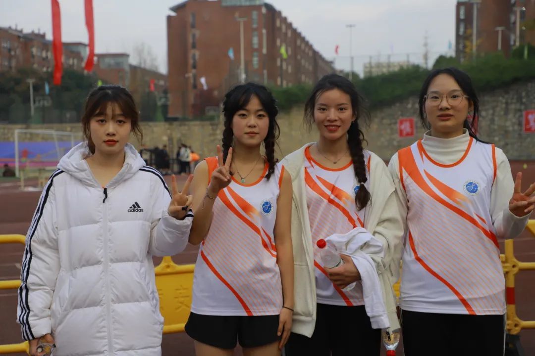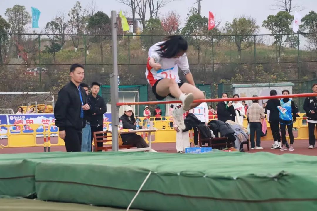 在女子1500米的决赛中,韦丽同学坚持不懈,砥砺前行,永不言弃,荣获第七名的优异成绩;在女子跳高决赛中,秦丽和杨松萍同学在步伐优美的助跑后,一跃,身体在空中划出一道弧线,迅速起身,收脚。最终分别荣获第四名和第六名的优异成绩。
