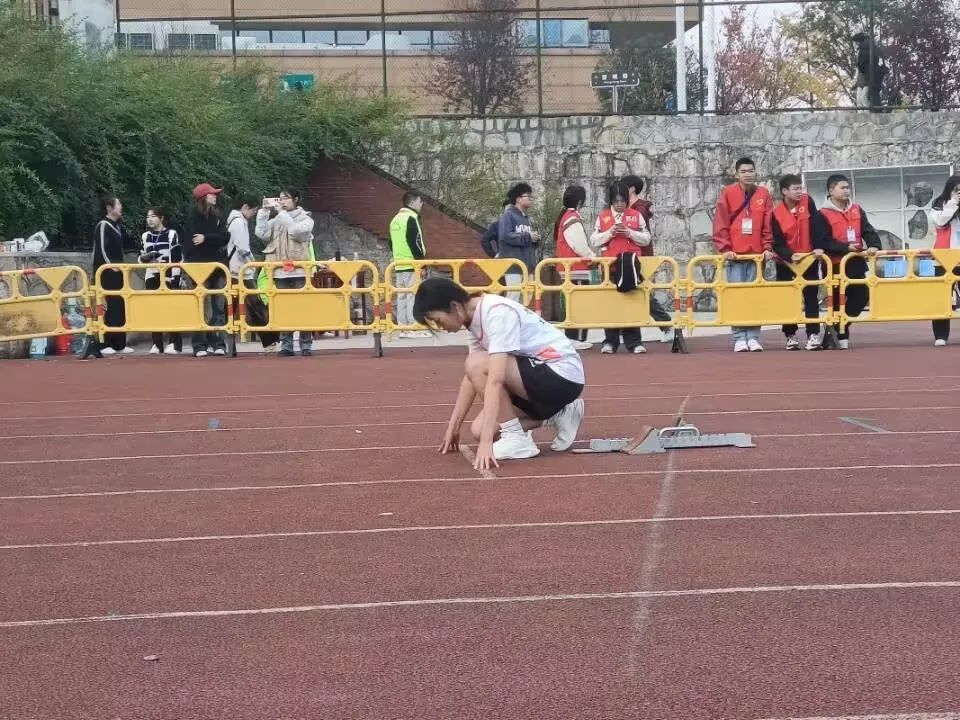 女子100米决赛中,王婷同学当“燃”不让,以弦箭破风之姿驰骋赛场,以劈波斩浪之势书写荣光,以热血奋斗之态追逐梦想,荣获第四名的优异成绩。