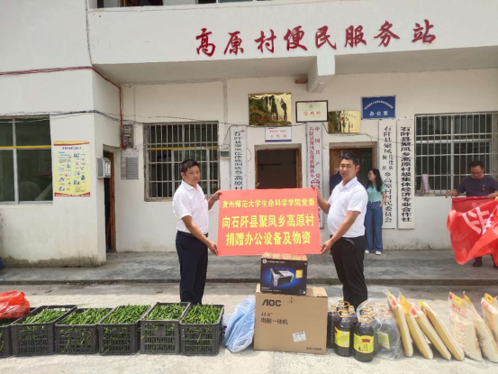 接着,骆科建代表学院党委,向高原村捐赠了新购置的电脑和打印机(价值4700元),帮助高原村改善办公条件,提高办事效率。并在聚凤乡乡长龚进和唐再新队长的安排下,探望慰问了高原村的空巢老人、残疾人、留守儿童和孤儿。