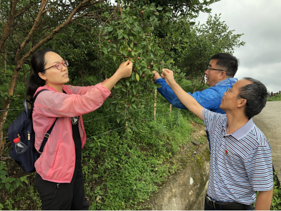 7月4日上午,在项目负责人罗充教授的引导下,学院党员教师深入石阡低产油茶林改造技术集成与示范研究基地,深入调查取样,并对病态茶果进行仔细观察,了解品种在实验区域的生物学特性及物候,分析病态成因。