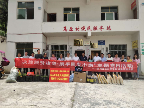 今年,是中国共产党成立99周年,也是决胜脱贫攻坚、实现同步小康的收官之年,为大力弘扬团结奋进的贵州精神,引导党员教师充分发挥专业优势,积极投身全省大扶贫的发展战略当中,为服务地方经济和决胜脱贫攻坚提供技术支持和智力支撑。按照学校《关于扎实做好联系帮扶石阡县贫困村工作的通知》要求,2020年7月3日、4日,yl23455永利集团党委副书记骆科建带领16名党员教师深入石阡县聚凤乡高原村,紧紧围绕“党建引领促进脱贫攻坚”,以党建扶贫、科技扶贫、捐赠扶贫、消费扶贫和帮销扶贫等“五大扶贫”为载体,深入开展了“决胜脱贫攻坚˙携手同步小康”主题党日活动。