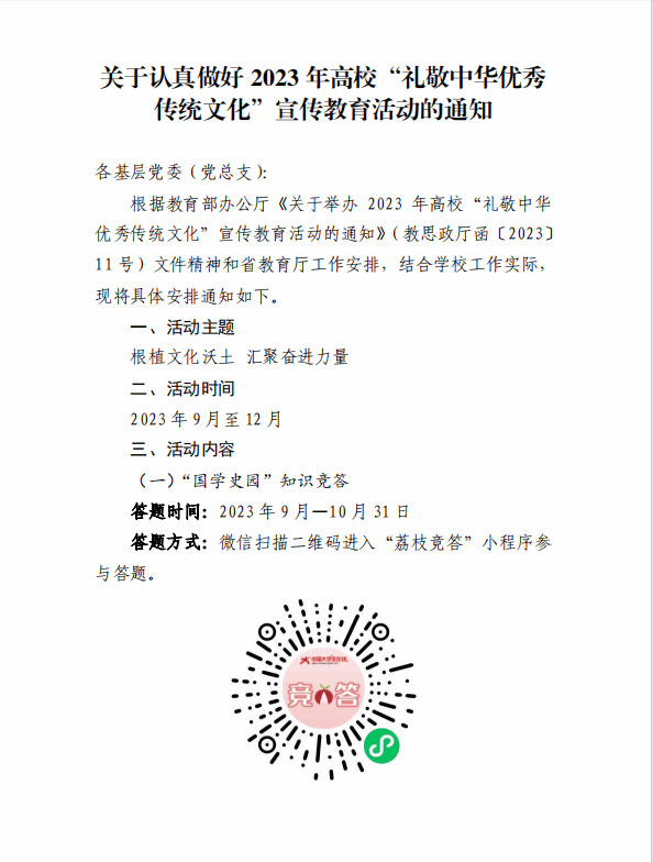 关于认真做好2023年高校“礼敬中华优秀传统文化”宣传教育活动的通知