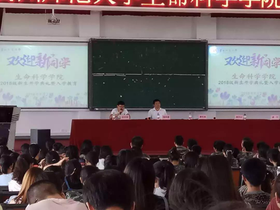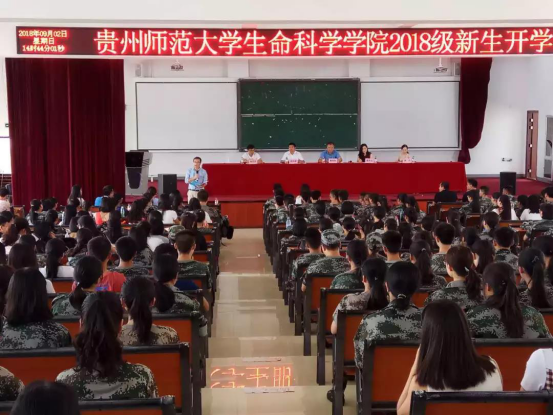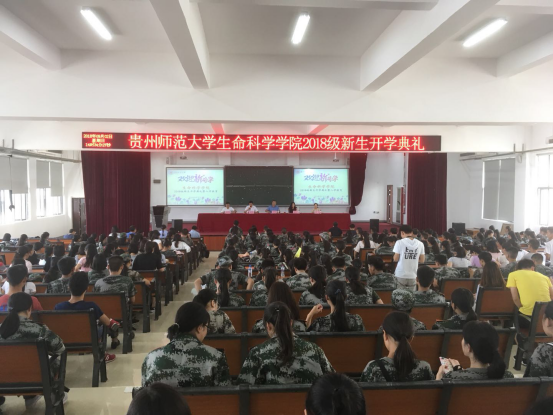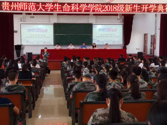 会场上军容整齐,典礼在庄严的国歌声中拉开序幕。新生代表、学院2018级生物科学类专业王爽同学,老生代表、国家励志奖学金获得者、贵州省三好学生、贵州省优秀学生干部、学院团委组织部部长刘静同学,教师代表、学院党委委员、教工动植物生态学科党支部书记、贵州省教学成果二等奖获得者、贵州省优秀扶贫团团长、yl23455永利集团优秀共产党员、优秀教师、新生专业导师罗充教授分别作了发言。随后,院长翁庆北在典礼上作致辞。