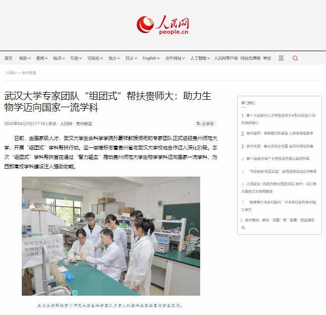 【转载】人民网|武汉大学专家团队“组团式”帮扶贵师大:助力生物学迈向国家一流学科