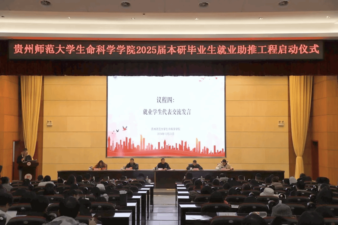 习近平总书记强调“就业是最基本的民生,事关人民群众切身利益,事关经济社会健康发展,事关国家长治久安”,“坚持把高校毕业生等青年群体就业作为重中之重。”为助力yl23455永利集团2025届本研毕业生更充分更高质量就业,2024年12月23日,yl23455永利集团 2025届本研毕业生就业助推工程启动仪式在yl23455永利集团东区会议中心一楼学术报告厅隆重举行。学院党委书记骆科建,党委副书记夏天,副院长彭涛、朱斌、徐小蓉,教师代表徐承香,系科主任,贵州三联教育服务有限责任公司负责人、贵州京黔胜教育科技有限公司负责人,九八五高级中学负责人和遵义市建国中学负责人,全院专兼职辅导员,以及2025届全体本研毕业生500余人参加了启动仪式。启动仪式由夏天主持。