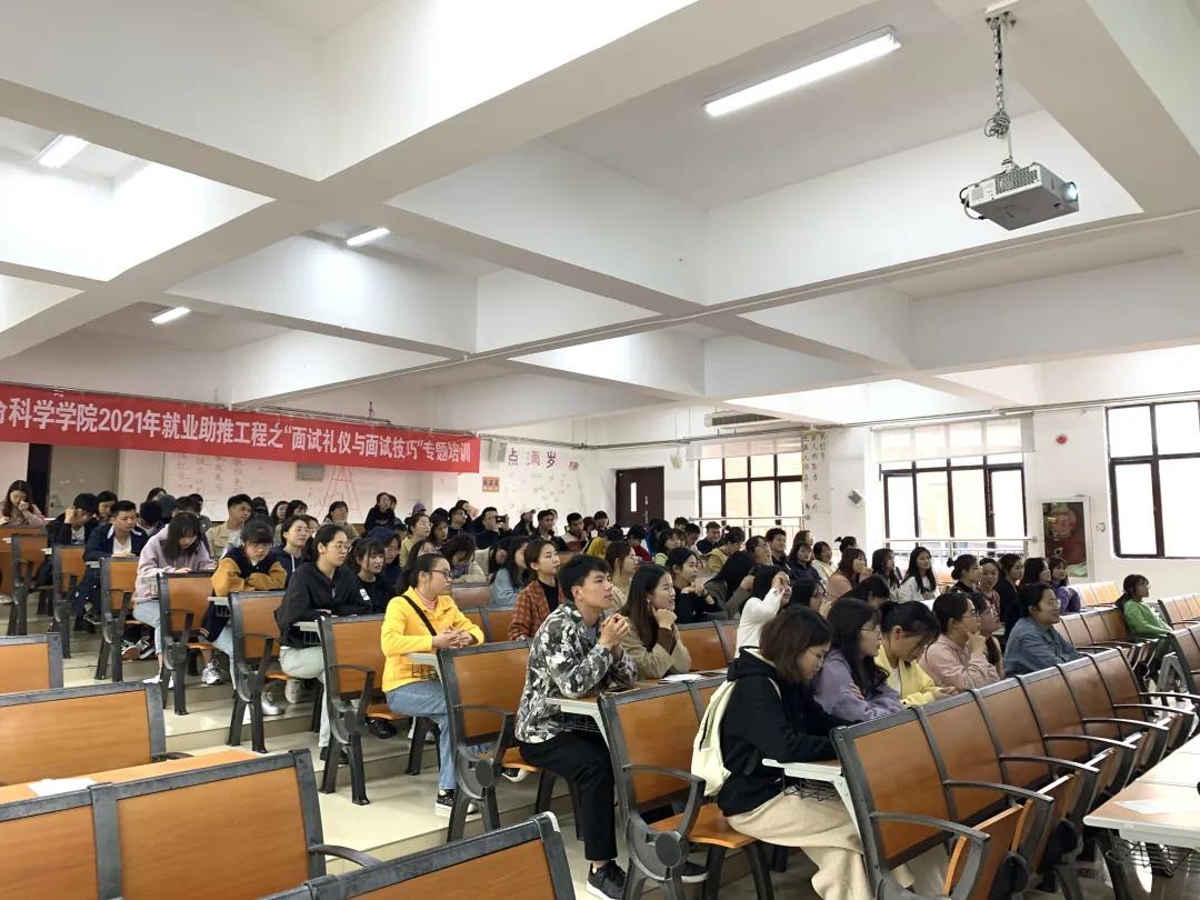 高校毕业生就业形势日趋严峻,就业竞争越加激烈。如何在在短时间内赢得用人单位、招聘专家的接受、喜欢、信任并顺利得到期待的工作,简历是敲门砖,面试既是最关键的要素,也是求职过程的最终环节。为帮助永利广大毕业生顺利就业,解决求职过程中的瓶颈问题,熟知求职程序,提高求职技能,由学校招生与就业指导处主办,yl23455永利集团承办的“青春有礼·仪路通行”面试礼仪与技巧专题培训会,4月26日下午在yl23455永利集团理科综合实验楼举行。本次培训特别邀请到了音乐学院党委副书记潘瑜作为主讲嘉宾,培训会由yl23455永利集团党委副书记夏天主持,学院学生事务服务中心负责人李哲、学院团委负责人王晓爱、毕业班兼职辅导员谭雷涛博士、谷雷博士、刘秋萍博士,生科院2021届本硕毕业生以及兄弟学院毕业生代表共300余人参加。