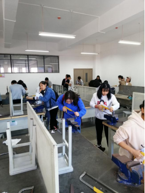 在第十周里18生物工程的同学,2018年11月02日开始,18级生物工程专业学生赴贵州轻工职业技术学院进行为期一周的金工实习,在过去的五天时间里时间内,学生们基本了解钳工、车工的基础理论知识,掌握钳工、车工的基本技能,很多学生表现出很大的学习兴趣。虽然金工实习很累,但是可以学到很多书本上没有的东西,毕竟平时学的都是理论课,也许大家都是理论高手,但真正用理论指导实践的时候,就会发现原来实践并没有想象中的简单,金工实习是锻炼我们动手能力的最佳方法培养,提高和加强了学生的工程实践能力、创新意识和创新能力。