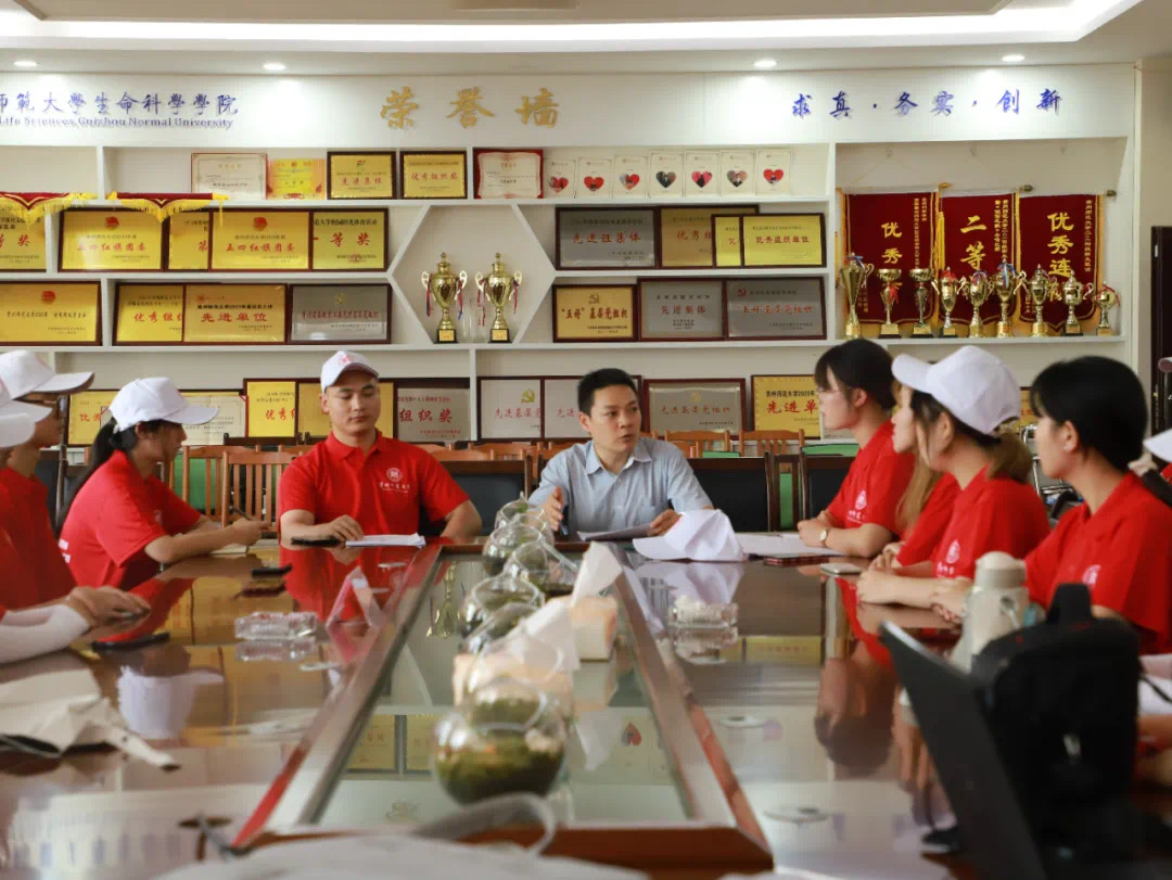 接下来,童炳丽介绍了学院2022年暑期“三下乡”社会实践活动前期筹备工作情况以及后期相关工作部署,明确各组职责分工。特别是针对清镇市红枫湖镇右二村的地理环境、人口状况、经济特征、产业发展等情况进行了详细介绍,使队员们对此次下乡的工作环境有了更为清楚的了解与认识。她强调,每位队员都要有主人翁意识,超前谋划与思考,要珍惜此次下乡的机会,发扬不怕苦不怕累的精神,在实践中锻炼自我、提升自我,在一周的时间中有所收获与成长。
