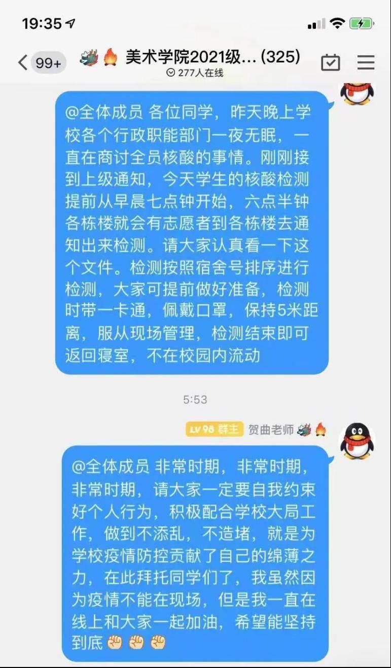 美术学院辅导员贺曲 线上做核酸检测动员