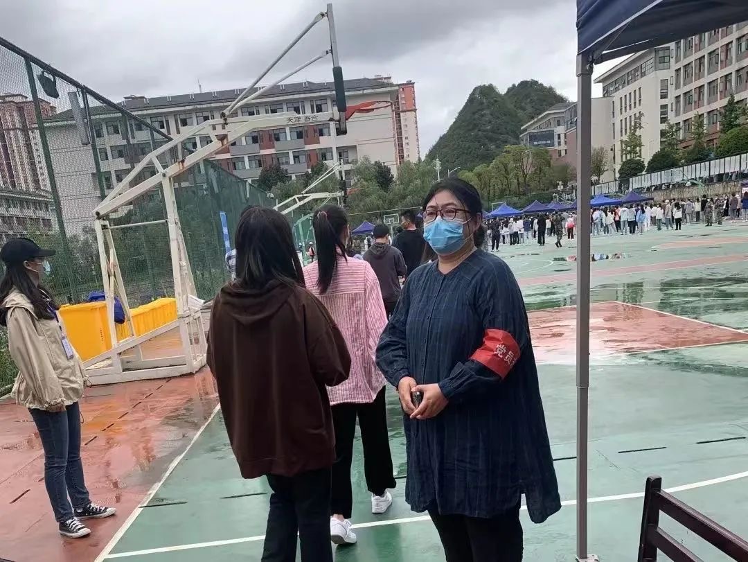 9月2日上午,全校静态管理、停课,所有师生到指定场所接受核酸检测。花溪校区设9个采样点,58个采样台。学校行政人员和辅导员担任防疫工作志愿者,引导学生有序排队、测温、扫码、采样;上午核酸检测系统奔溃,下午5:30恢复,核酸检测持续到晚上9:30点结束。由于校园静态管理,住在城区的老师无法返回家中,他们有的在花溪校区没有公租房,只能暂住办公室,有的来不及预备行李和生活用品。