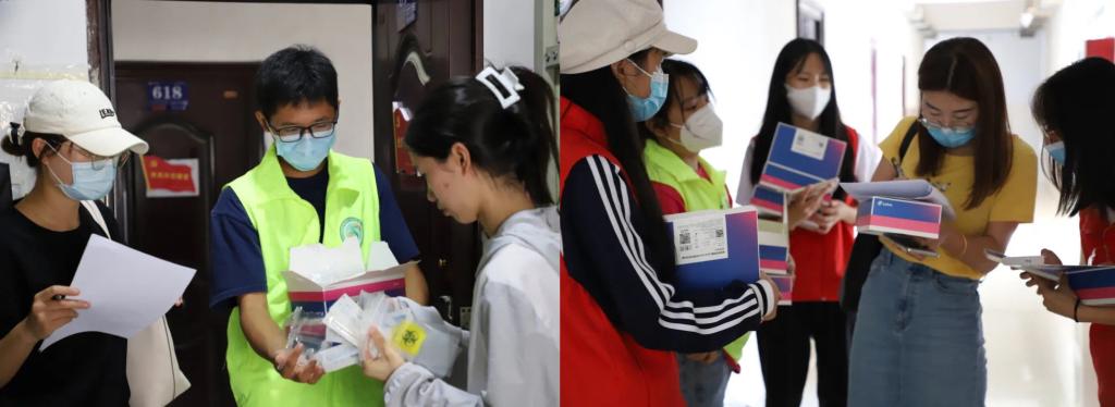 工作人员和老师们将试纸亲手送到寝室门口,由学生本人自行在寝室自测后,并上交结果。在规定时间内迅速完成了生科院的核酸抗原检测。在此期间,领导和老师们耐心为学生们讲解校内情况,做好学生安抚工作和思想教育。生科学子迅速地完成抗原检测任务,不仅展现了我们生科学子在实验探究上认真仔细的专业素养,更体现了我们生科学子果断的行动力和对抗疫情刻不容缓的决心!
