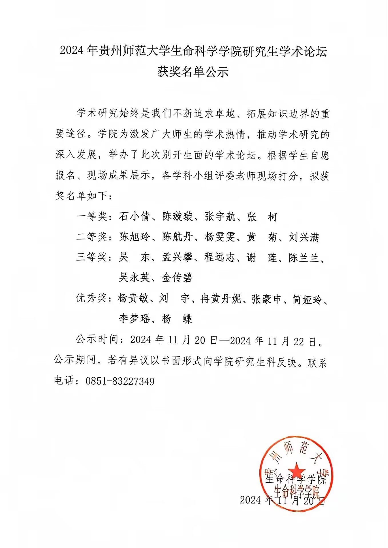 本届论坛评选出一等奖4人、二等奖6人、三等奖7人、优秀奖7人。公示名单如下: