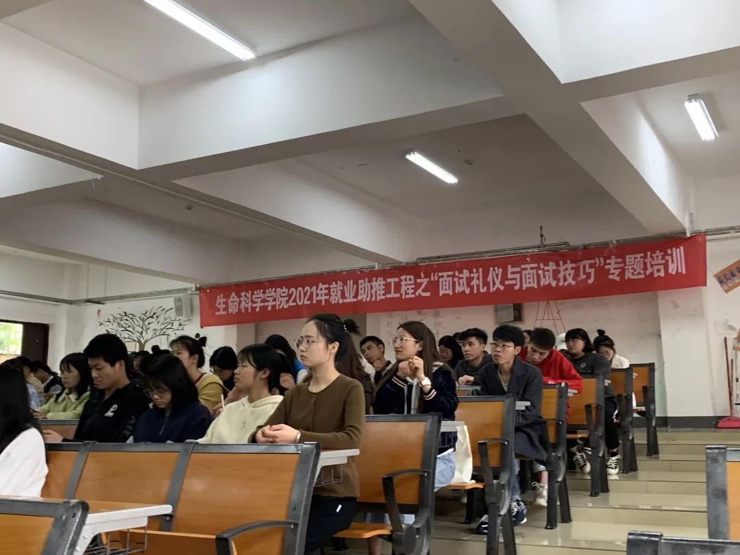 高校毕业生就业形势日趋严峻,就业竞争越加激烈。如何在在短时间内赢得用人单位、招聘专家的接受、喜欢、信任并顺利得到期待的工作,简历是敲门砖,面试既是最关键的要素,也是求职过程的最终环节。为帮助永利广大毕业生顺利就业,解决求职过程中的瓶颈问题,熟知求职程序,提高求职技能,由学校招生与就业指导处主办,yl23455永利集团承办的“青春有礼·仪路通行”面试礼仪与技巧专题培训会,4月26日下午在yl23455永利集团理科综合实验楼举行。本次培训特别邀请到了音乐学院党委副书记潘瑜作为主讲嘉宾,培训会由yl23455永利集团党委副书记夏天主持,学院学生事务服务中心负责人李哲、学院团委负责人王晓爱、毕业班兼职辅导员谭雷涛博士、谷雷博士、刘秋萍博士,生科院2021届本硕毕业生以及兄弟学院毕业生代表共300余人参加。