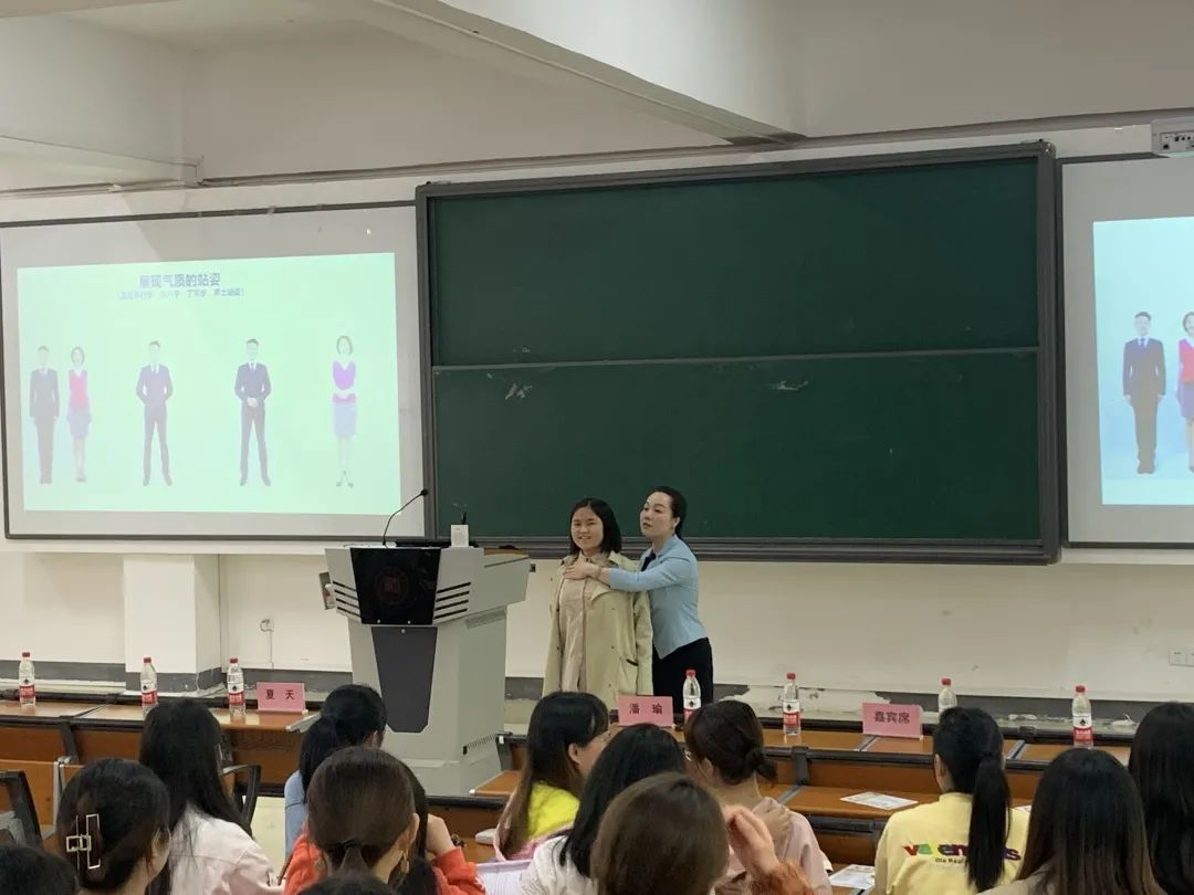 潘瑜对面试前准备、面试礼仪及其注意事项做了详细讲解,涉及面试时应聘者应注意的仪容仪表仪态、语言举止等各个方面。首先,对面试前准备做了介绍。让同学们准备资料,如简历、身份证、免冠照片等;心理准备,每一次尝试都是一次进步;做好功课,了解用人单位的情况、准备简短的自我介绍、所应聘岗位所需要的知识和技能;男女生着装的准备及注意事项,如不能穿牛仔裤、运动鞋等。其次,对面试礼仪的概念及其重要性做了详细的阐述。让同学们深刻了解到面试礼仪在求职面试过程中“第一印象”的重要作用。再次,讲解了面试过程中重要的技巧和方法。面试前要细心认真的做必要的准备,如咨询,检查和练习,提前到达;面试中要精神高度集中,做到“看”、“听”“说”的有机结合,即观察面试人员的表情、举止,通过这些细节来判断对方对自己的印象,倾听对方的语言,认真回答对方的问题;面试过后对面试官表示感谢后,安安静静的离开现场。最后,还对现场学生进行了站姿、走姿、坐姿、微笑、鞠躬、递简历、人际的距离、说话时的嗓音、问候、电话礼仪等方面的训练。