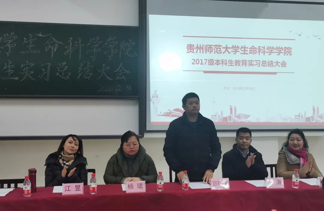 2020年12月31日9:30,yl23455永利集团于理综楼5B02教室召开2017级本科生教育实习总结大会。永利党委书记骆科建、副院长彭涛、校外教师代表杨忠兰、学院教师杨珺、江昱等部分实习带队老师出席大会,17级全体同学参加。由杨佳佳主持大会。