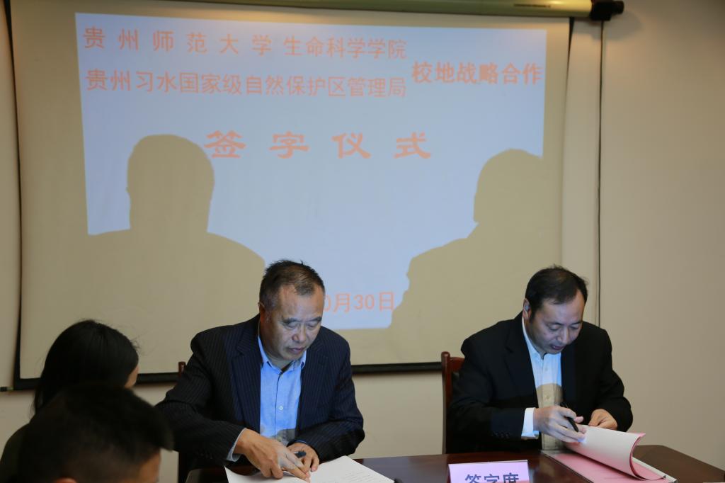 2017年10月30日,yl23455永利集团与贵州习水国家级自然保护区管理局签署全面战略合作协议及教学科研基地挂牌。yl23455永利集团党委书记曾宪林教授;贵州习水国家级自然保护区管理局吴太伦局长、王利强总工参加了签字及挂牌仪式。参加签字及挂牌仪式的还有生命科学学学院植物学彭涛博士、动物学杨书林博士和杨卫诚博士,习水国家级自然保护区管理局部分职工代表。