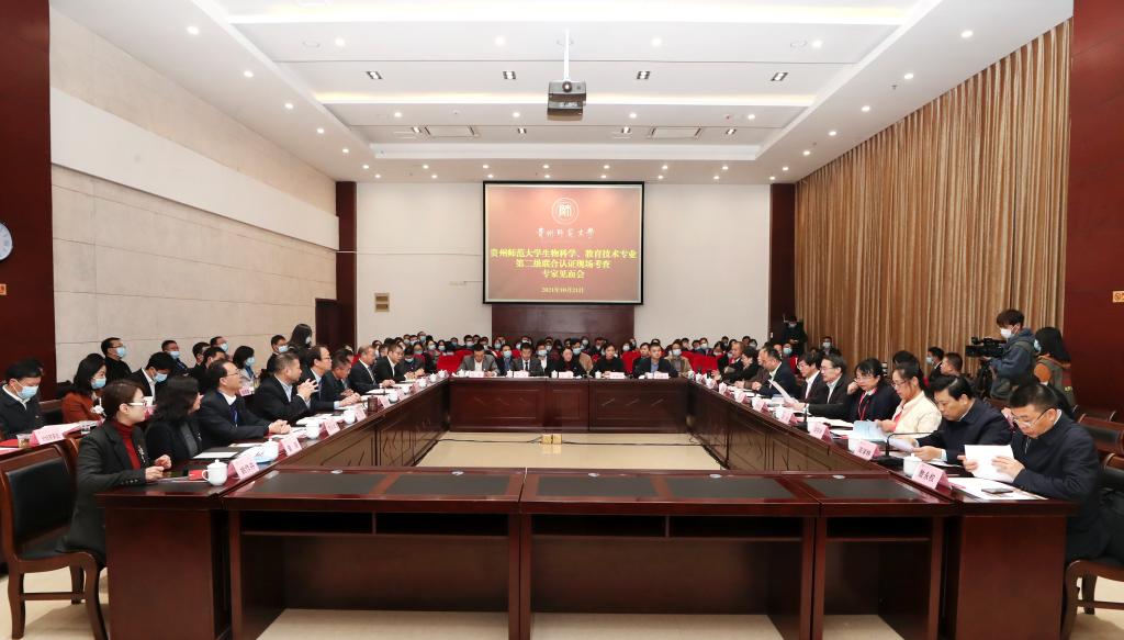 10月21日,受贵州省教育厅委托,由重庆市教育评估院组织,以华中师范大学原副校长李向农和西南大学教师教学发展中心主任刘义兵教授为组长的教育部专家组一行14人进校开展师范类专业第二级认证现场考查工作,见面会在花溪校区行政楼六楼多功能会议厅举行。校领导肖远平、赵守盈、乙引、赵松、罗永祥、欧阳恩良、曾丽,校党委委员蒋雪明、姚作舟,校长助理史秋衡出席见面会。重庆市教育评估院教师发展与评估中心副主任田腾飞,贵州省教育厅师范类专业认证观摩团,学校相关职能部门负责人,yl23455永利集团、教育学院负责人及部分教师代表,师范专业相关学院负责人等参加会议。会议由联合专家组组长李向农主持。